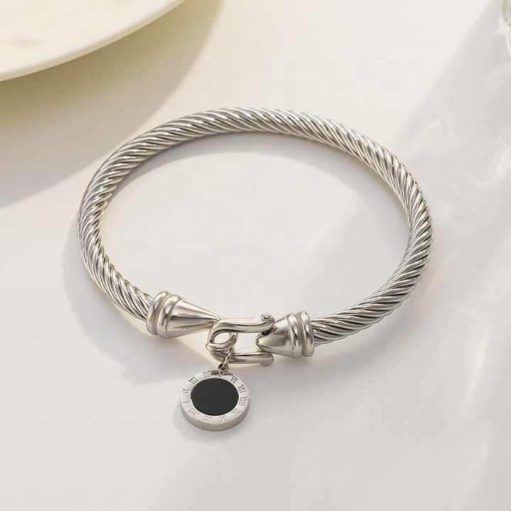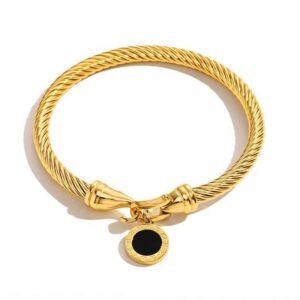 Elevate your style with this sophisticated silver-twist bracelet. Crafted with intricate detailing, this bangle features a unique rope-style design and a sleek black charm pendant for a modern, elegant touch. Perfect for casual wear or special occasions, this timeless accessory adds a hint of luxury to any outfit. A secure clasp ensures durability and comfort for all-day wear. This Bracelet is a timeless accessory and an ideal gift for someone special. Perfect for birthdays, anniversaries, or as a symbol of appreciation.